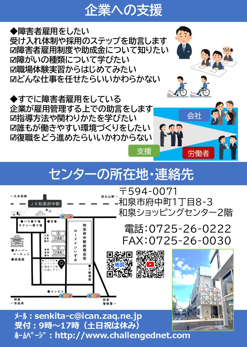 泉州北障害者就業・生活支援センター事業 ①②③④事業主の皆様へ