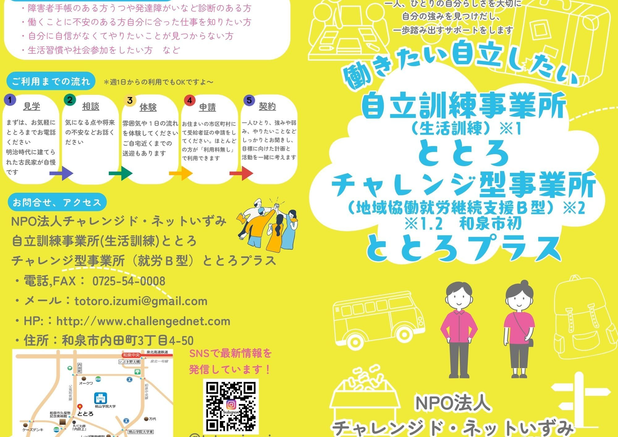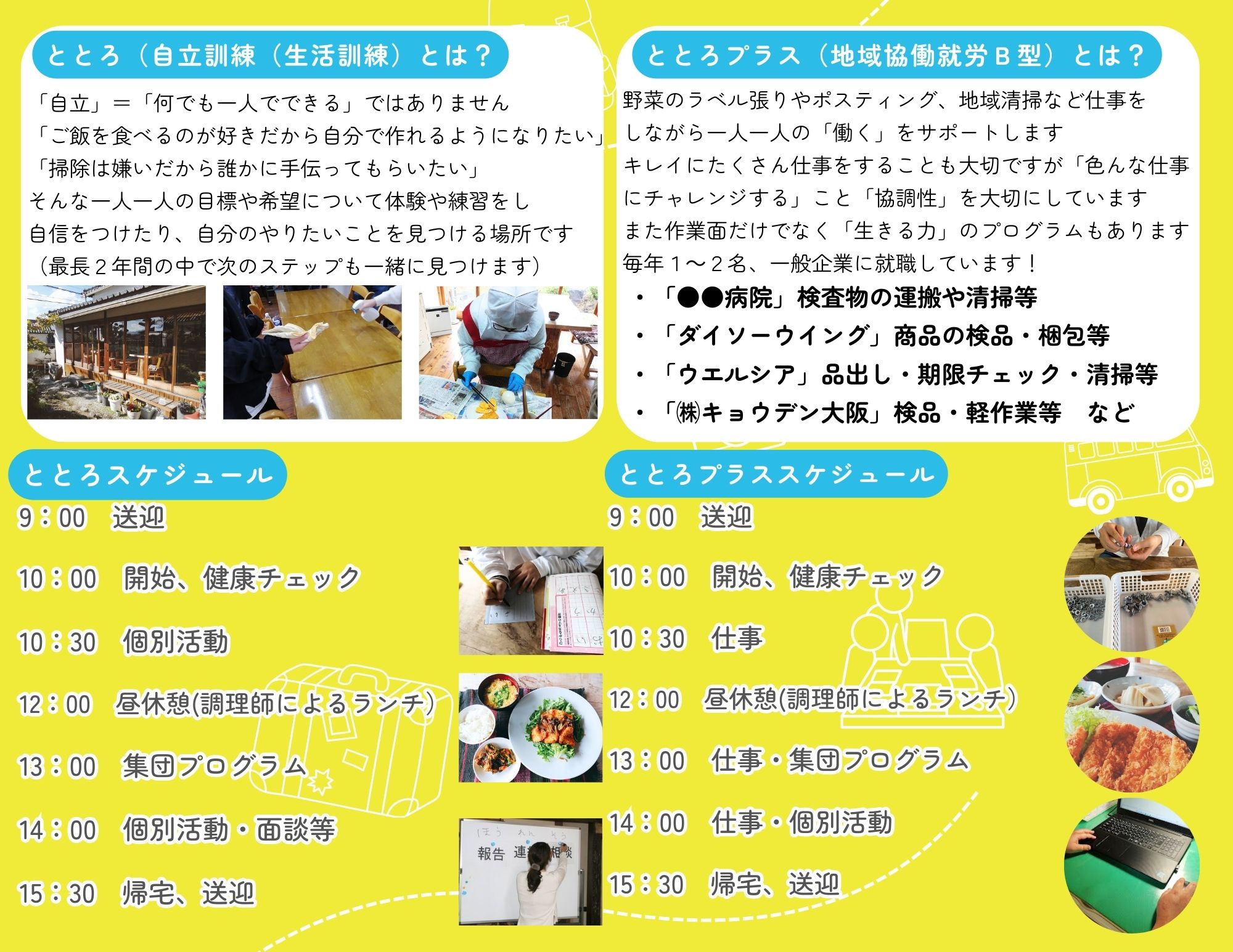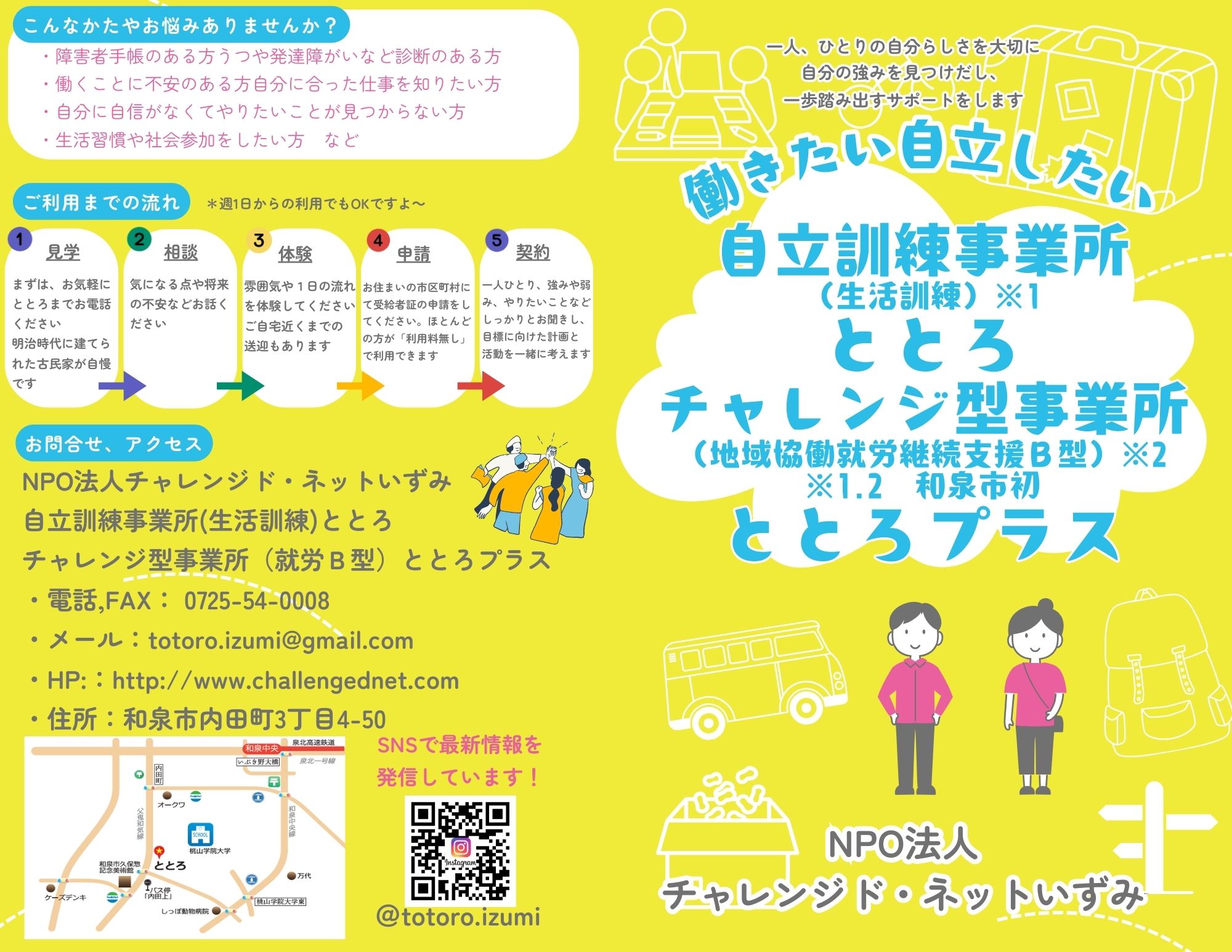 自立訓練事業所ととろ、チャレンジ型事業所ととろプラス パンフレット ①②