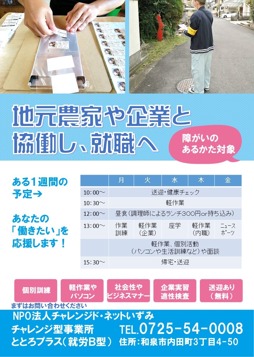 チャレンジ型事業所ととろプラス(B型) ととろプラス チラシ